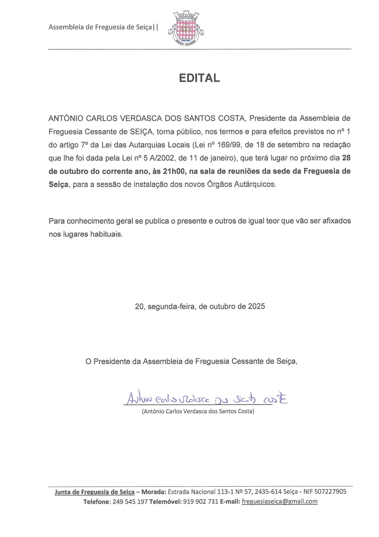 Já o referi antes, e volto a reforçar que a Freguesia é de todos, nós somos apenas porta vozes de toda a comunidade e como tal esperamos da parte de toda a Assembleia, independentemente das opções partidárias, uma força que assente em pilares de lealdade, respeito, envolvência, resiliência e dinamismo, pois fomos todos eleitos pelos Seicenses e temos o dever de olhar o passado apenas para perspetivar o futuro.